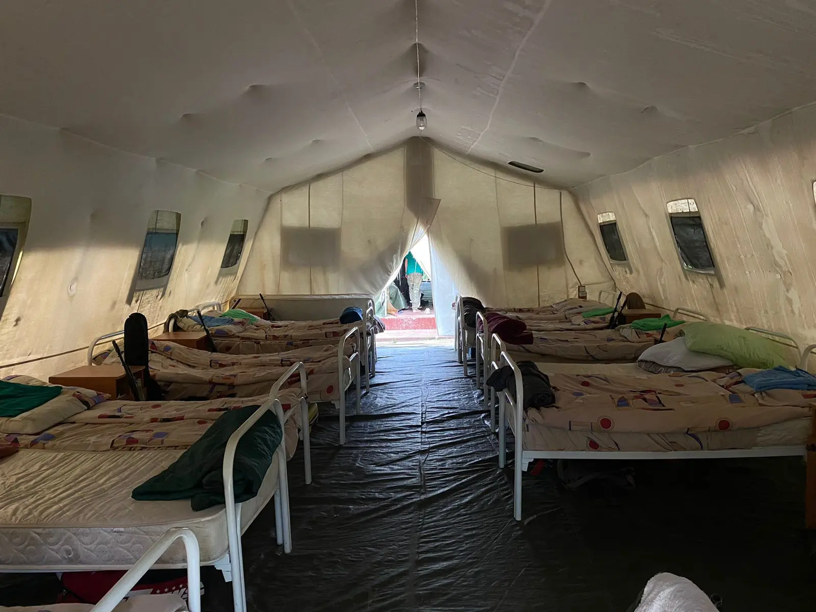 На территории есть кухня и столовая, медицинский пункт, а также базовые коммуникации: водопровод, канализация, туалеты, душевые кабины, горячая вода.